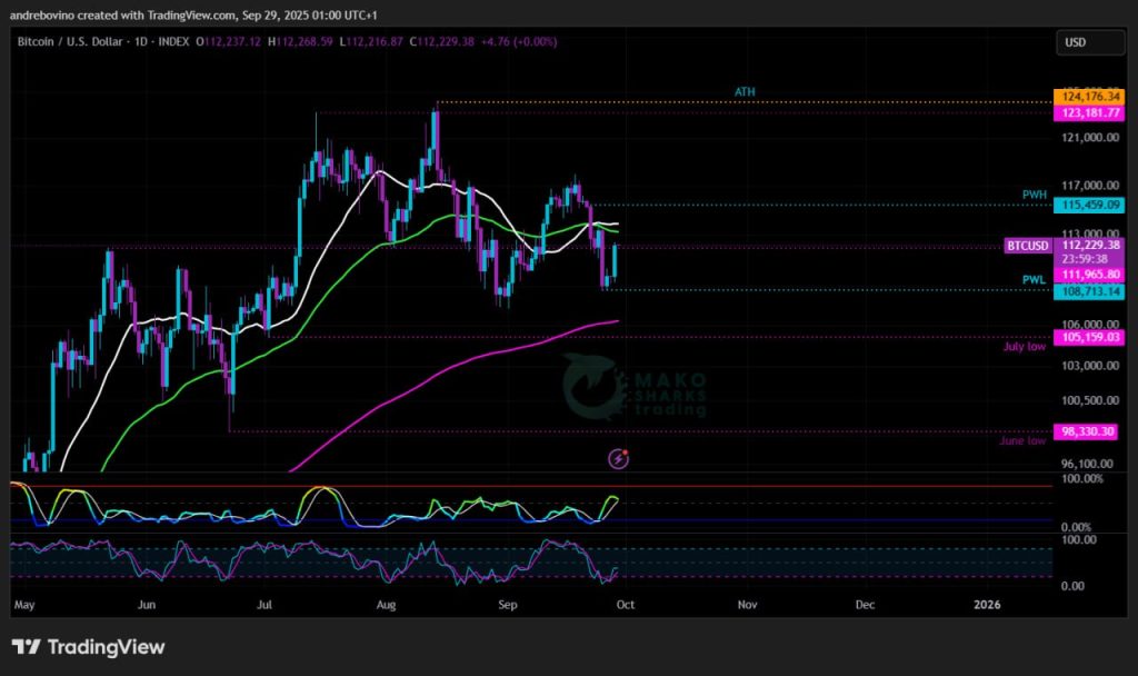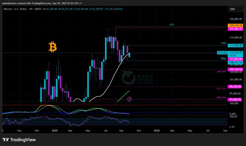 Bitcoin začína týždeň na 112,2 tisíc! Nové nižšie minimum (LL) alebo vyššie maximum (HH)?
