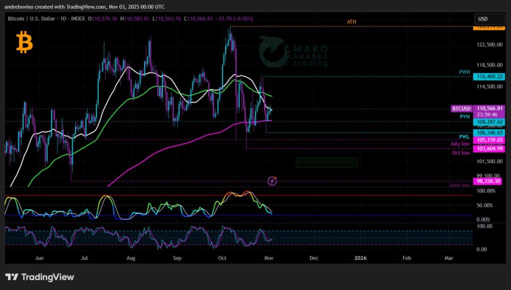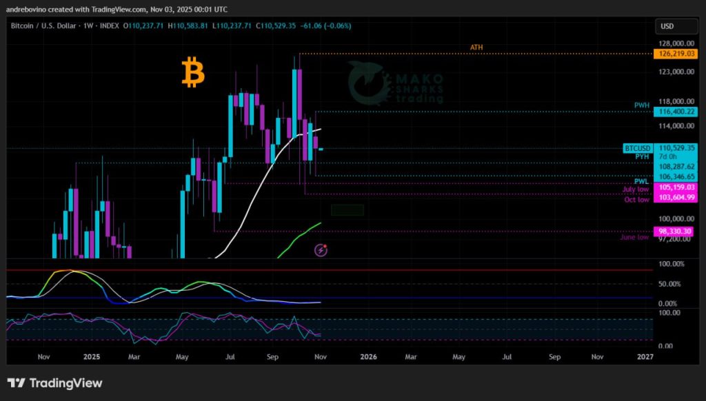 Bitcoin začína svoj týždeň na úrovni 110,5k! „UPtober“ sa skončil v červených číslach s cenovým rozpätím 21,83 %, čo z neho robí jeden z najfascinujúcejších mesiacov v histórii krypta – od nového historického maxima po najväčšiu likvidačnú udalosť, akú trh doteraz videl! Napriek tomu Bitcoin pokračuje vo svojej „ping-pong“ konsolidácii, udržiavajúc krypto komunitu v napätí.