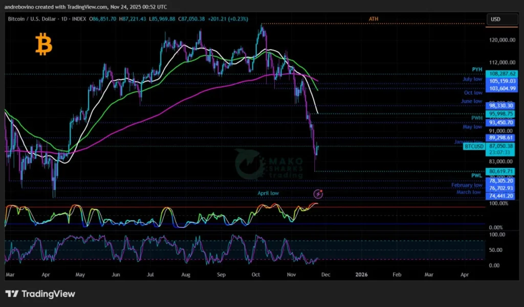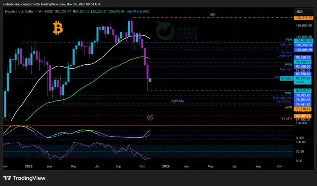Počas týždňa je kľúčom pre medvede zostať pod PWH 95.9k, aby udržali opraty pevne v rukách a ideálne získať akýkoľvek úspešný denný uzávierku pod PWL 80.6k, čo určite posiela Bitcoin do zóny 70k, kde medvede, ak budú pokračovať týmto tempom, môžu potenciálne ohroziť aprílové minimum 74.4k a matový býkov a Hopium tým, že vytvoria LL pod ním! 🩸 📉 ⚰️
