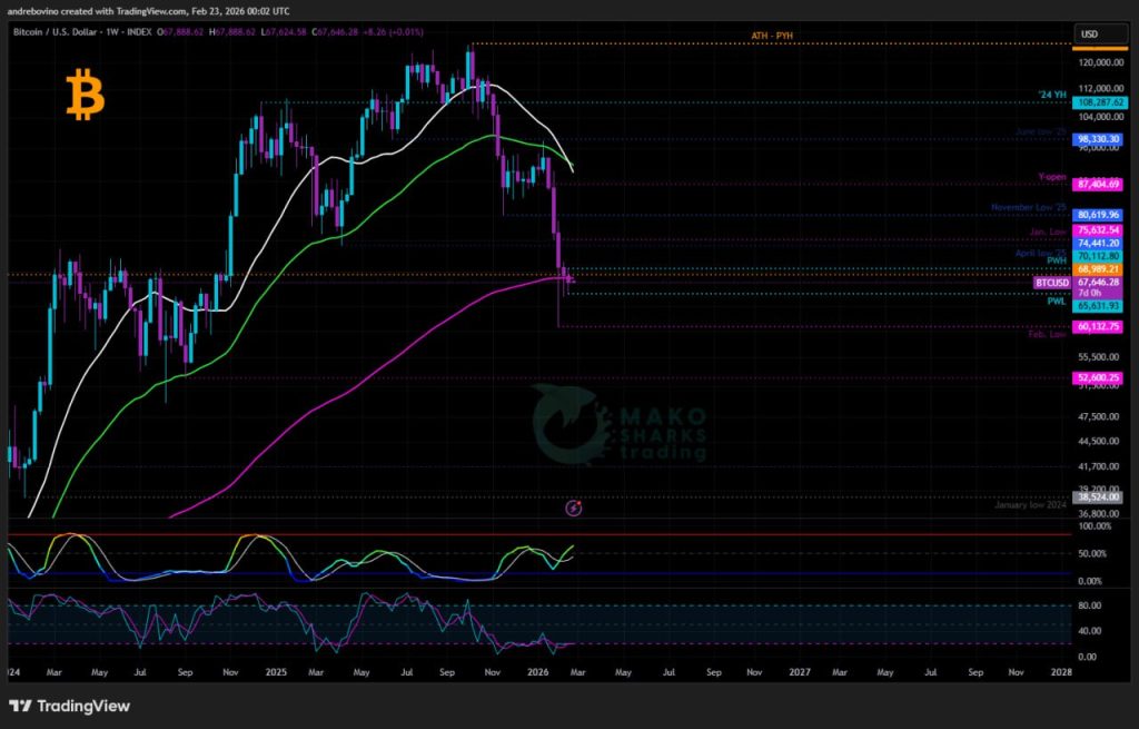 Týždenná technická analýza BTC od Mako Sharks