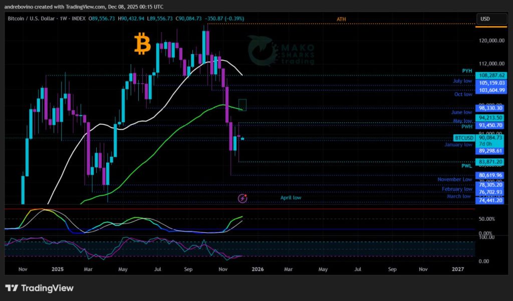 Ideálne pre Býky tento týždeň je akékoľvek úspešné denné uzavretie nad uvedenými úrovňami (98,3k), čo by veľmi pravdepodobne otvorilo cestu pre výzvu na PYH 108,2k, ale aby začali vykonávať obnovenie júnového minima na úrovni 98,3k, Býky potrebujú úspešné denné uzavretie nad predchádzajúcim týždenným maximom (PWH) na 94,2k, pričom si musia udržať podporu od denného a mesačného 21SMA 87,9k, pretože ich strata vedie k PWL 83,8k a tenkému ľadu na novembrové minimum 80,6k. 🕊 🌩 🐈