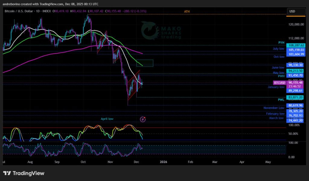 Bitcoin začína tento týždeň na 90,4k! Zatiaľ žiadne väčšie zmeny, pričom USDT.D si udržiava svoju býčiu štruktúru vlajky, zatiaľ čo Bitcoin pokračuje v tvorbe medvedej vlajky. Úrovne neplatnosti a potvrdenia zostávajú takmer identické s predchádzajúcimi reláciami, čo nás necháva len sledovať vznikajúci konflikt: Medvede lietajú na krídlach Nazgûl cez kryptoverzum a Býky kráčajú dopredu so svojou neúnavnou légie hobitov, elfov a ľudí, ktorí sú povzbudzovaní Hopiumom. 😈🥊👼